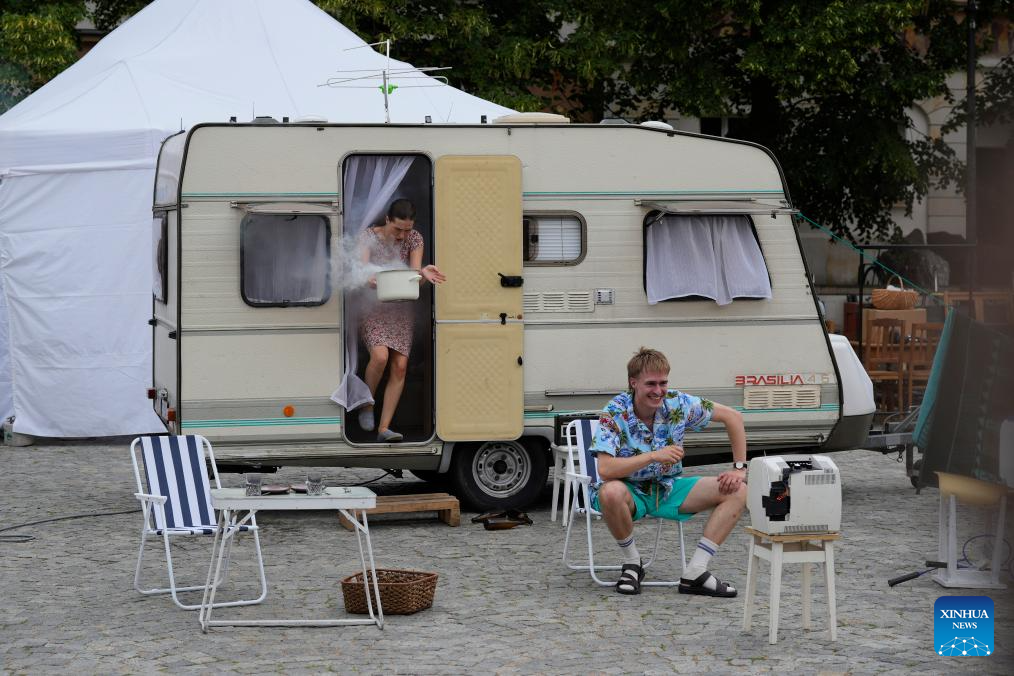 Actors perform in the play Baltic Story in the Old Town of Warsaw, Poland, June 28, 2025. The 32nd edition of the Street Art Festival is held from June 26 to 29 in Warsaw, featuring theater, contemporary circus, and performance art in public spaces across the city. (Photo by Jaap Arriens/Xinhua)