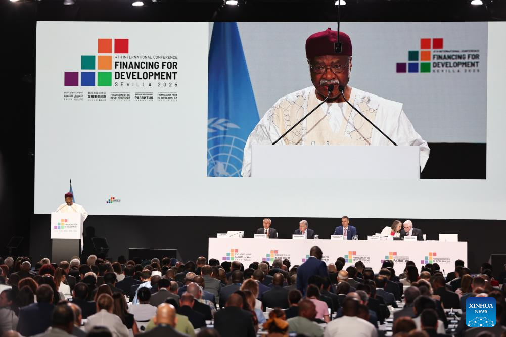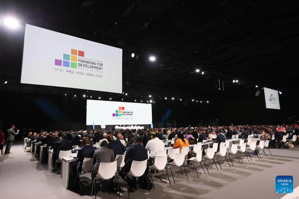This photo taken on June 30, 2025 shows a view of the opening session of the fourth International Conference on Financing for Development in Seville, Spain. The fourth International Conference on Financing for Development, focusing on global development financing issues, took place from Monday and will continue through Thursday, with participation from representatives of governments, international organizations, financial institutions, business communities, among others. (Xinhua/Li Jing)