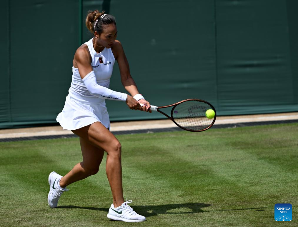 LONDON, July 1 (Xinhua) -- Katerina Siniakova of the Czech Republic upset the fifth seed Zheng Qinwen of China in the women's singles first round at Wimbledon on Tuesday.