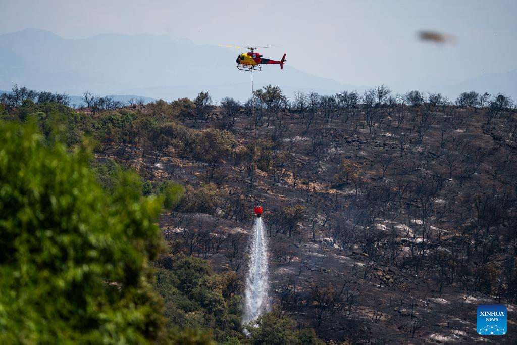 MADRID, July 2 (Xinhua) -- Two farmers were killed in a wildfire that burned through 5,000 hectares in the La Segarra district of Lleida province, north-east Spain, on Tuesday, according to local emergency services.