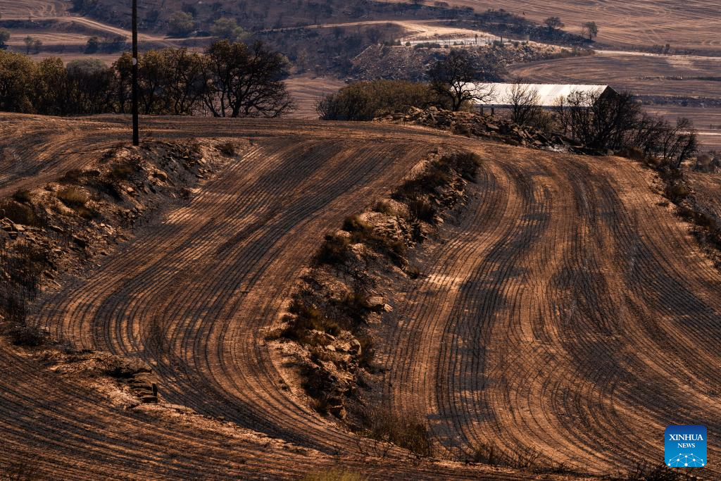 This photo taken on July 2, 2025 shows the burned land in Lleida province, Spain. (Photo by Joan Gosa/Xinhua)