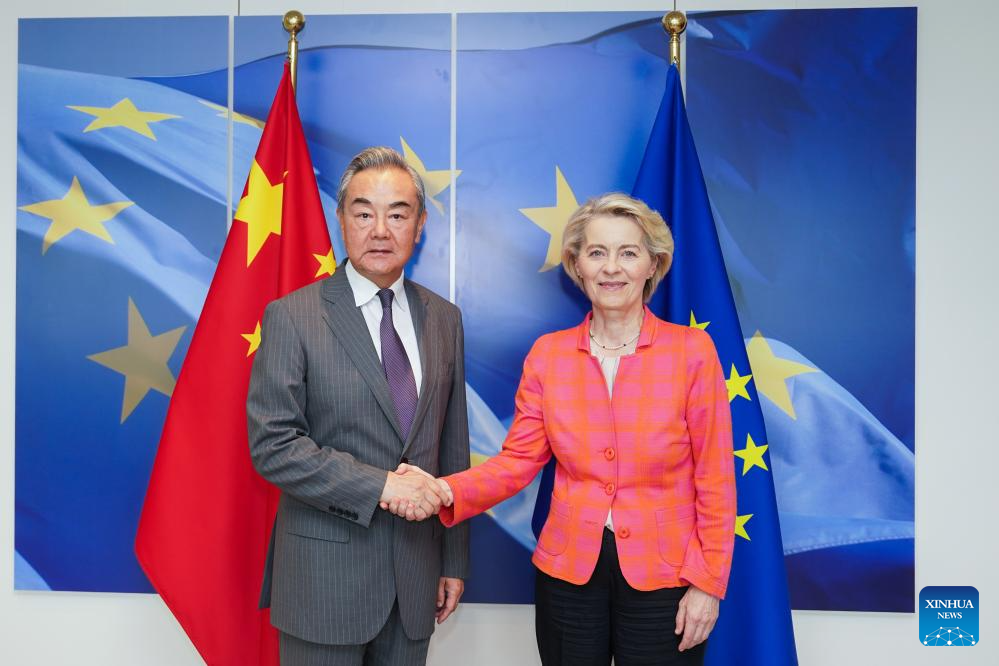 BRUSSELS, July 2 (Xinhua) -- European Commission President Ursula von der Leyen met with Chinese Foreign Minister Wang Yi here on Wednesday, with both sides expressing willingness to deepen cooperation and jointly address global challenges.