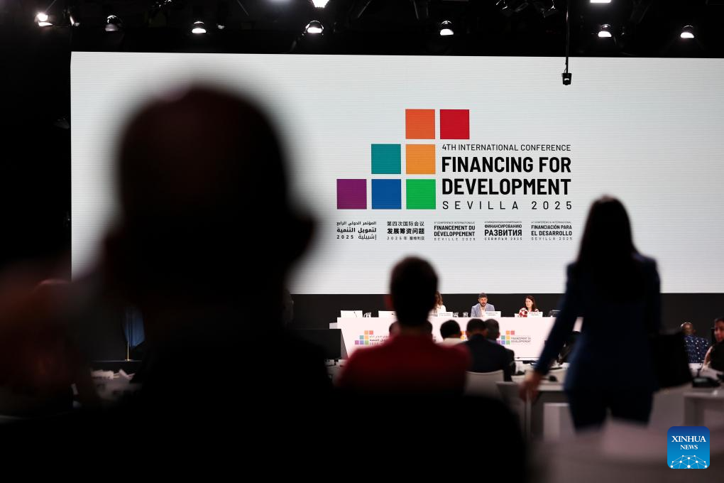 People attend the Fourth United Nations Conference on Financing for Development at the FIBES Sevilla Exhibition and Conference Center in Seville, Spain, July 3, 2025. The Fourth United Nations Conference on Financing for Development (FFD4) was concluded here on Thursday. At the FFD4, global partners announced a new Action Plan to scale up private sector investment in developing countries through blended finance. (Xinhua/Li Jing)