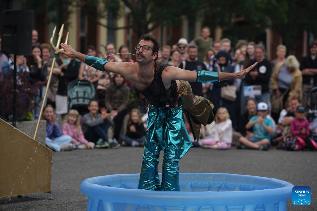 Artists stage a street theatre performance during the Prague Street Theatre Festival in Prague, the Czech Republic, July 9, 2025. The week-long festival opened here on Wednesday. (Photo by Dana Kesnerova/Xinhua)