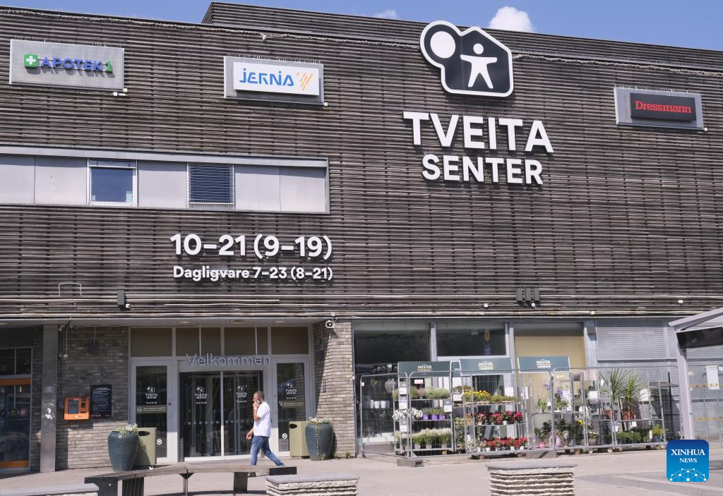 This photo taken on July 20, 2025 shows the Tveita Center shopping mall in Oslo, the capital of Norway. A shooting incident at a shopping mall in Oslo, capital of Norway on Saturday has left one person hospitalized with gunshot wounds, local police said. (Xinhua/Zhang Yuliang)