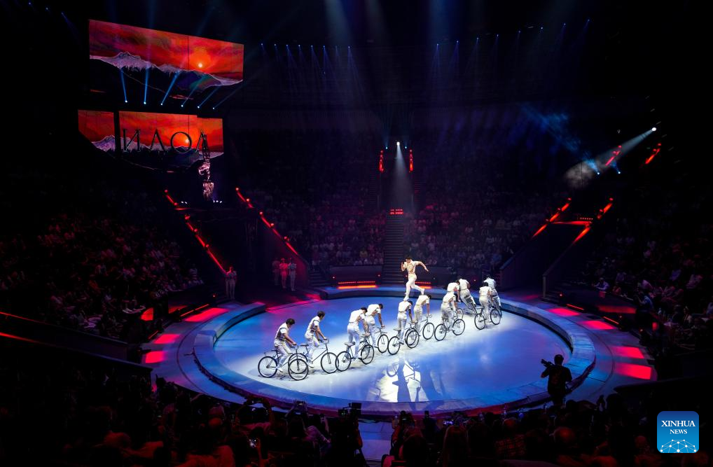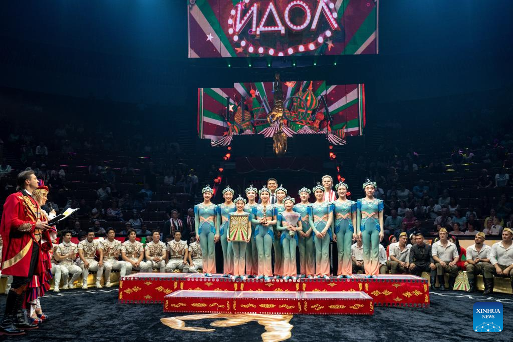 Chinese acrobats perform during the World Circus Art Festival "IDOL-2025" in Moscow, Russia, July 20, 2025.