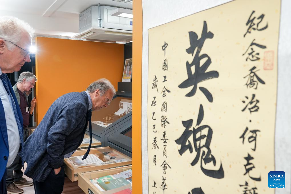 People visit an exhibition commemorating George Hogg in Harpenden, Britain, July 22, 2025. An exhibition commemorating George Hogg, a British journalist who dedicated his life to supporting China's war against Japanese aggression decades ago, kicked off here Tuesday.(Xinhua/Wu Lu)