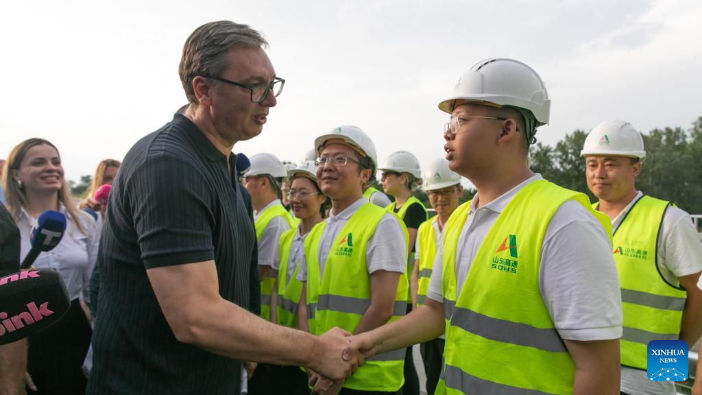 GOLUBAC, Serbia, July 27 (Xinhua) -- Serbian President Aleksandar Vucic on Saturday commended Chinese construction teams during his inspection of the Danube Corridor expressway, highlighting the rapid progress of the key infrastructure project being built by a Chinese company in eastern Serbia.