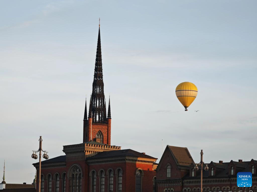 This photo taken with a mobile phone shows a hot air balloon in Stockholm, Sweden on July 27, 2025. (Xinhua/Dai Tianfang)