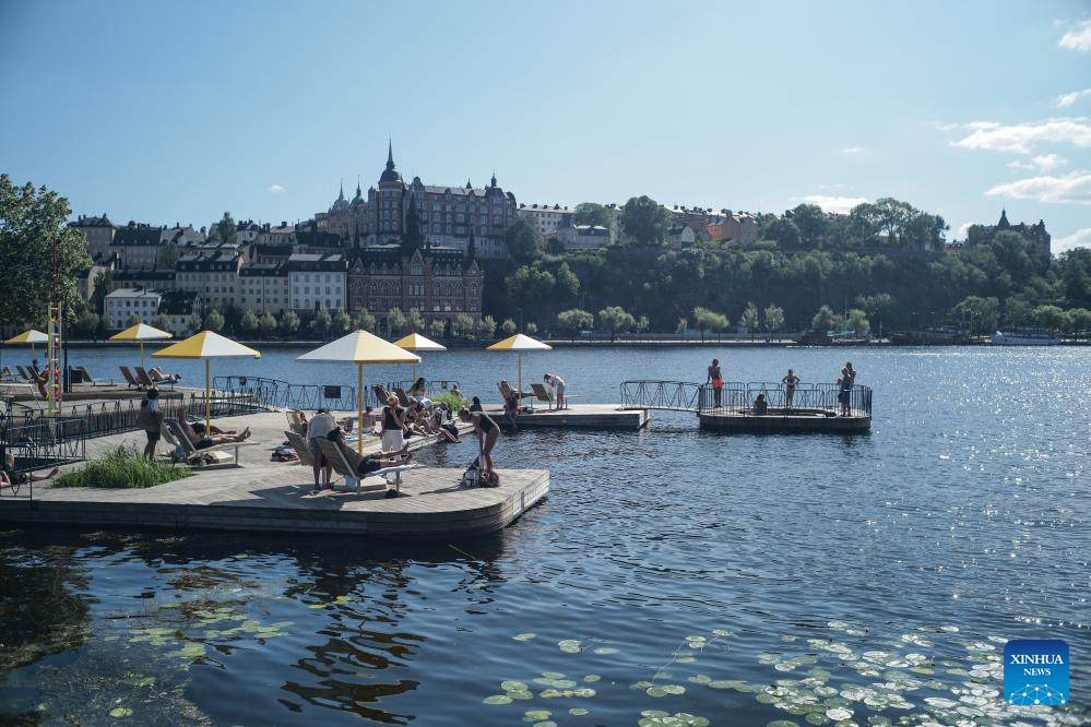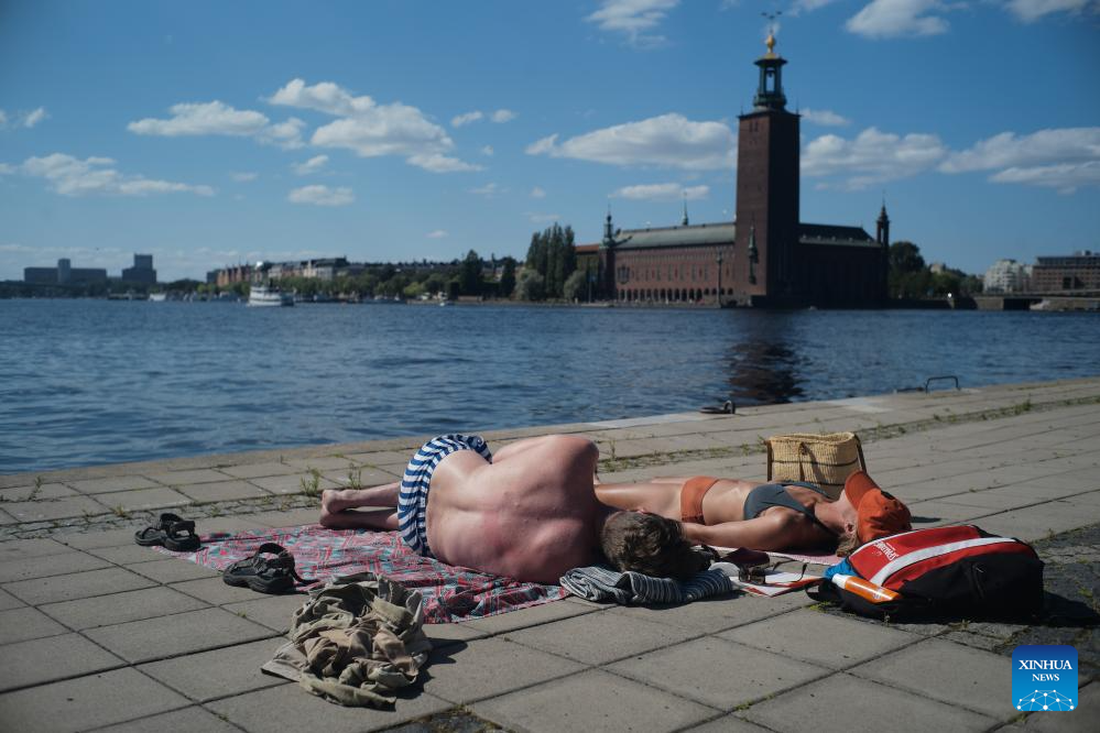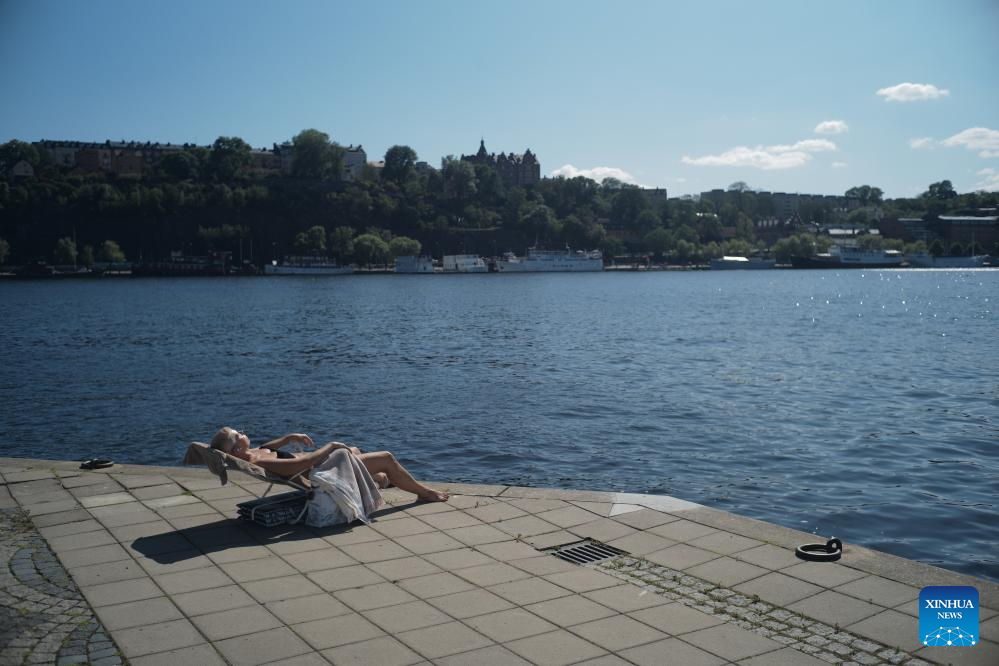 People bask in the sun in Stockholm, Sweden on July 27, 2025. (Xinhua/Peng Ziyang)