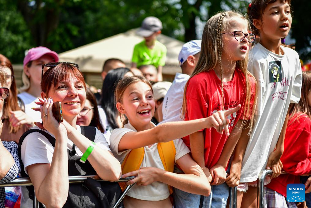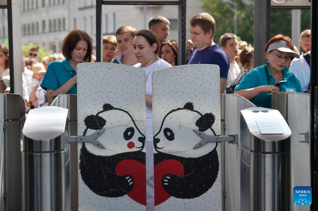 People attend a birthday celebration for giant panda Dingding at the Moscow Zoo in Moscow, Russia, on July 30, 2025. The Moscow Zoo held an event to celebrate giant panda Dingding's eighth birthday on Wednesday. (Xinhua/Zhang Chaoqun)