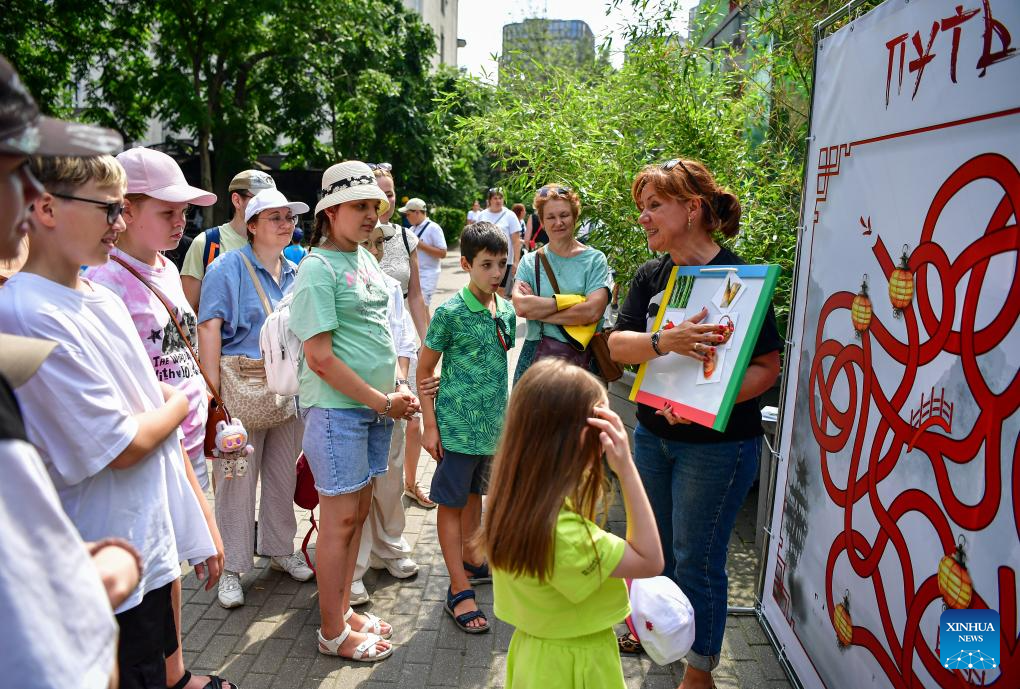 People listen to an introduction about the diet of giant panda at the Moscow Zoo in Moscow, Russia, on July 30, 2025. The Moscow Zoo held an event to celebrate giant panda Dingding's eighth birthday on Wednesday. (Xinhua/Zhang Chaoqun)