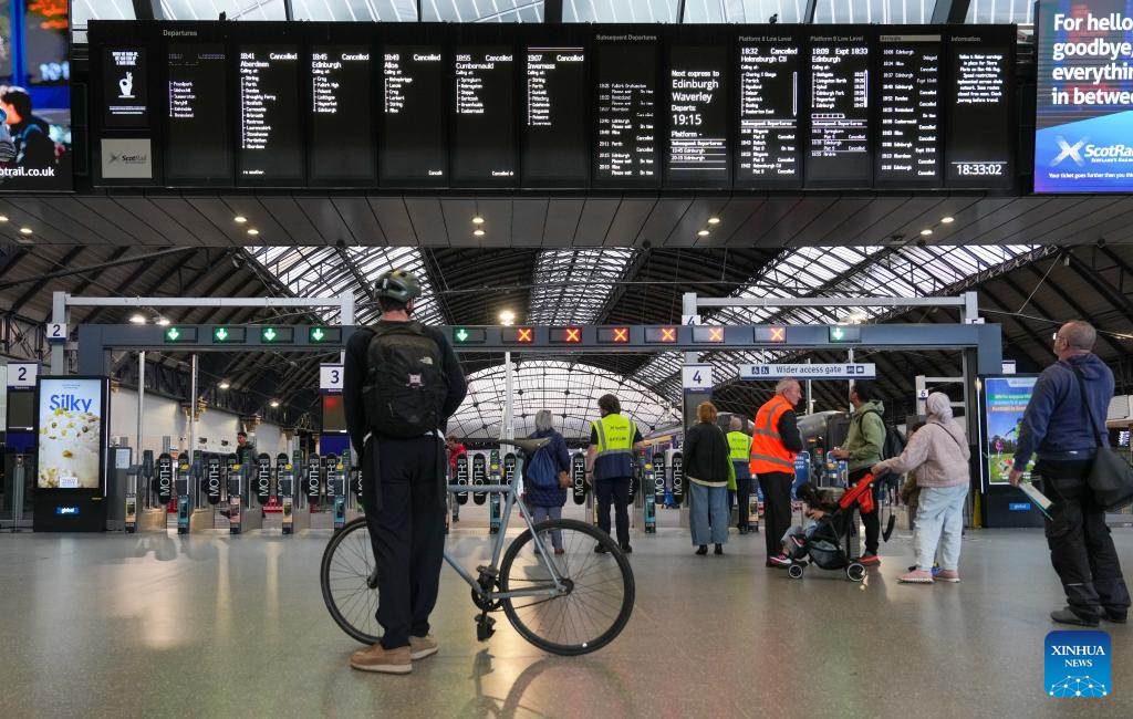 LONDON, Aug. 5 (Xinhua) -- Across Scotland, 95 percent of the railway network affected by Storm Floris on Monday has now been reopened, Route Director Ross Moran at Network Rail Scotland confirmed on Tuesday.