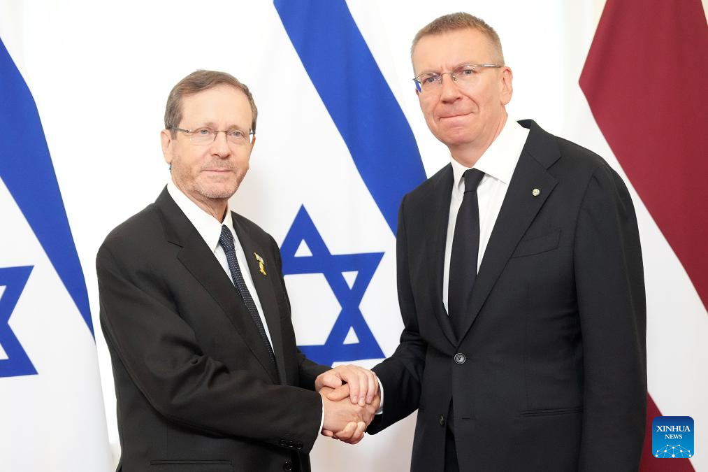 RIGA, Aug. 5 (Xinhua) -- Latvian President Edgars Rinkevics on Tuesday urged action to secure the release of hostages and ease civilian suffering in Gaza during a meeting with visiting Israeli President Isaac Herzog.