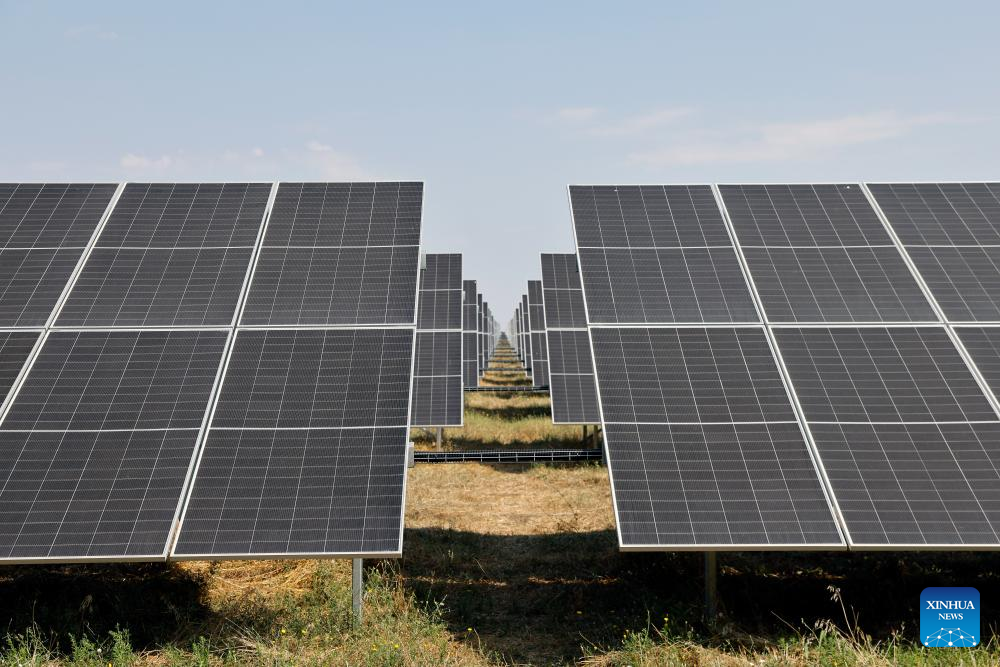 A partial view of a 31.82-megawatt photovoltaic power station built by China's Pinggao Group International Engineering Co., Ltd. is pictured in Stefan cel Mare, Calarasi County, Romania, Aug. 12, 2025. (Photo by Cristian Cristel/Xinhua)