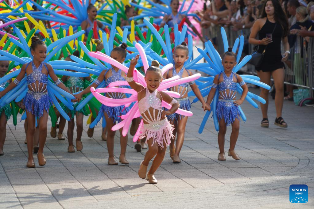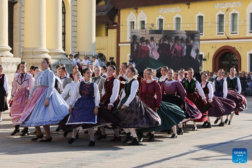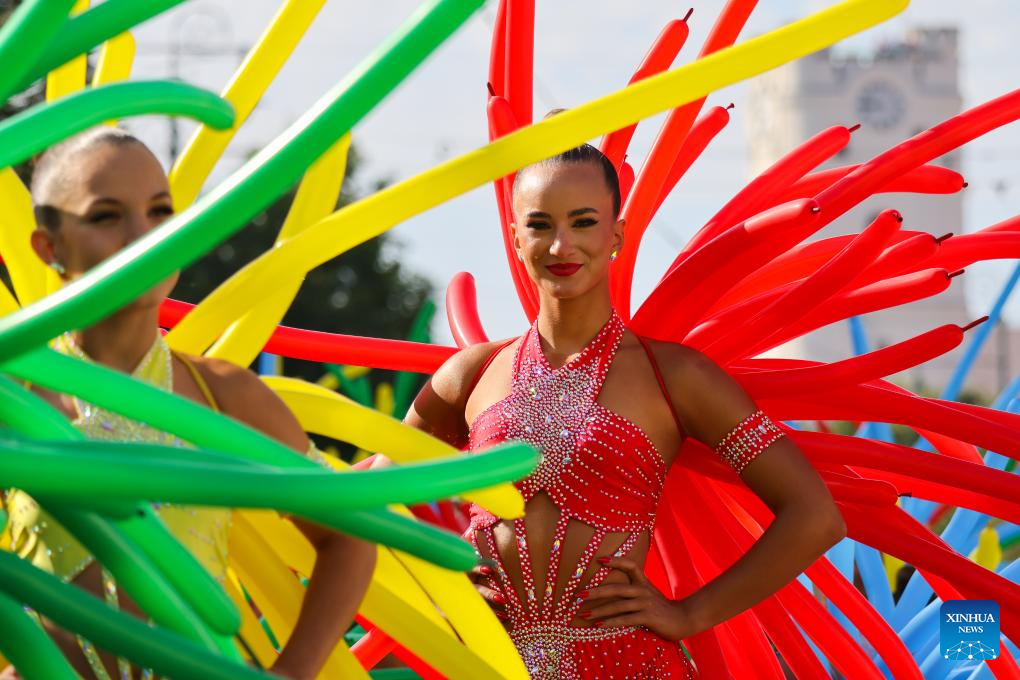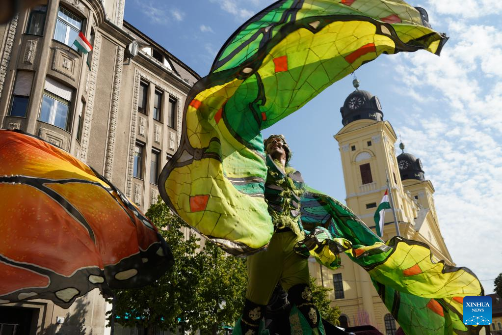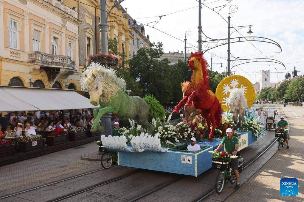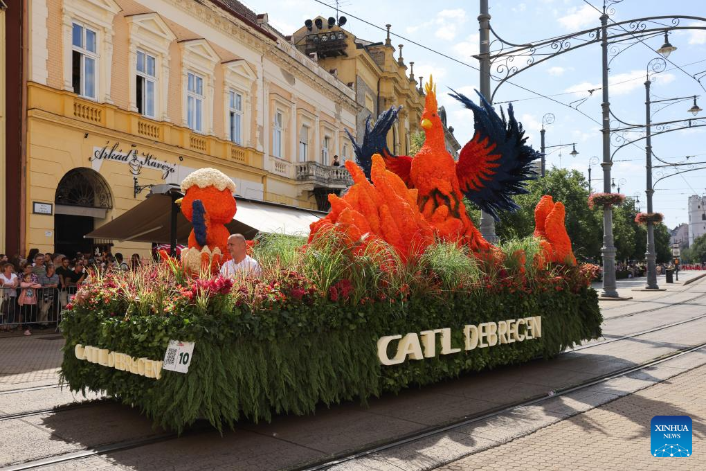 Revellers attend a parade during the Debrecen Flower Carnival to celebrate the National Day in Debrecen, Hungary, Aug. 20, 2025. (Xinhua/Chen Hao)
