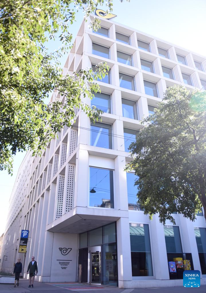 A man walks past the main entrance of Austrian Post's headquarters in Vienna, Austria, Aug. 24, 2025. Multiple postal operators across Europe are suspending most package shipments to the United States, citing uncertainty, confusion and rising costs linked to forthcoming U.S. customs regulations on low-value imports. By Saturday, postal operators in more than a dozen countries, including France, Britain, Italy, Austria, Finland, Sweden, Latvia, Croatia, Slovenia, and Bosnia and Herzegovina, had announced either suspensions or severe restrictions on parcels bound for the United States. (Xinhua/He Canling)