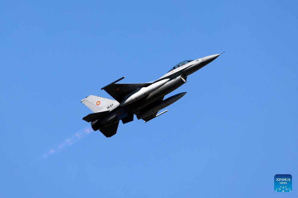 A Romanian Air Force military pilot performs on an F-16 Fighting Falcon jet during the Bucharest International Air Show 2025 (BIAS), held at Baneasa airfield in Bucharest, Romania, Aug. 30, 2025. Over 100 civil and military aircraft, as well as over 200 pilots and paratroopers participate in the 15th edition of BIAS, Romania's largest air show. (Photo by Cristian Cristel/Xinhua)