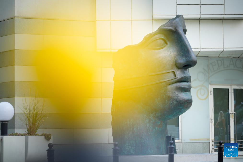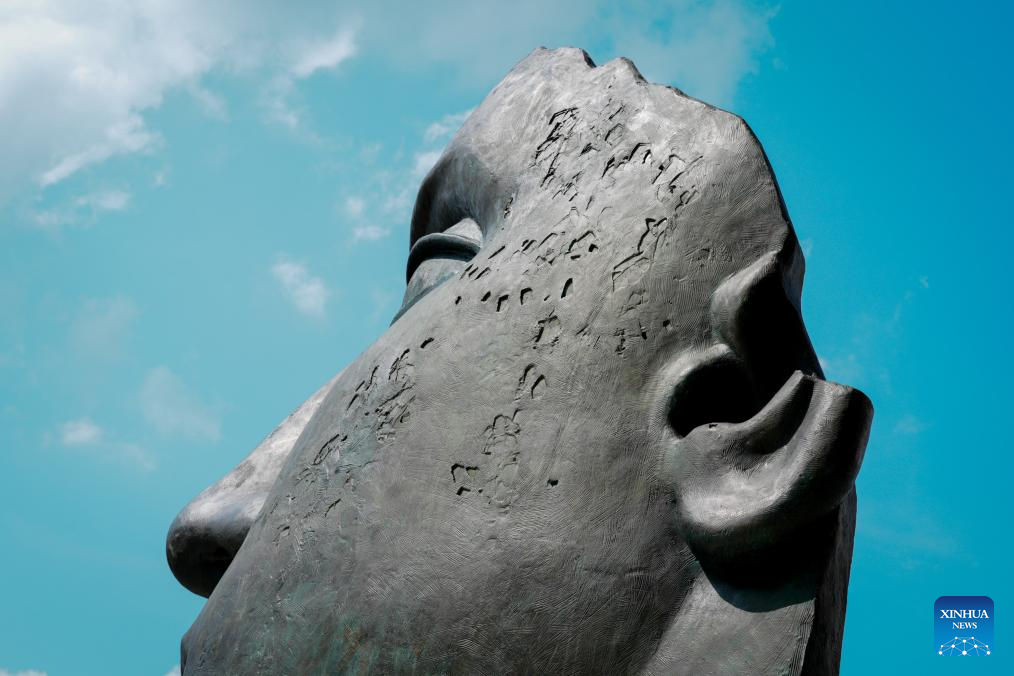 The sculpture Tindaro is seen in Warsaw, Poland, Sept. 5, 2025. Tindaro, created in 1997 by renowned Polish sculptor Igor Mitoraj (1944-2014), has been transported from Paris to Warsaw and is now on displayed in the city center. Mitoraj was internationally acclaimed for his monumental fragmented human figures. (Photo by Jaap Arriens/Xinhua)