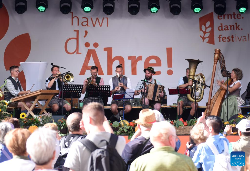 People visit a harvest festival (the Erntedankfest) in Vienna, Austria, Sept. 6, 2025. The festival was held in Vienna on Sept. 6 to 7. (Xinhua/He Canling)