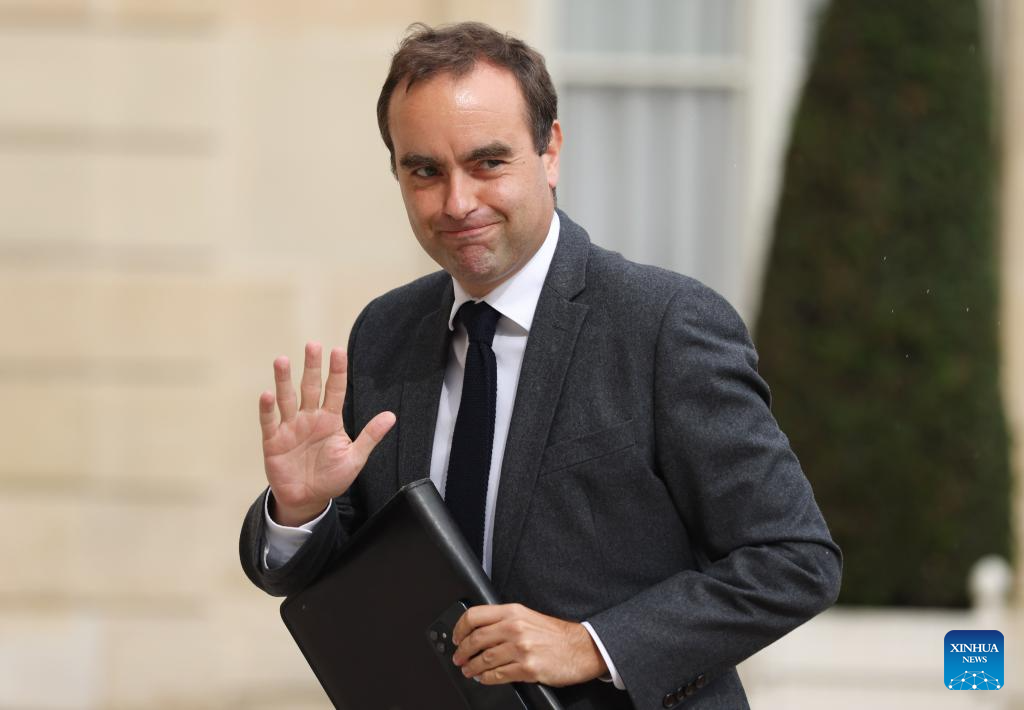 Photo taken on Sept. 4, 2025 shows French Defense minister Sebastien Lecornu at the Elysee Palace in Paris. French President Emmanuel Macron nominated Defense Minister Sebastien Lecornu as the new prime minister, Sept. 9, 2025. (Xinhua/Gao Jing)