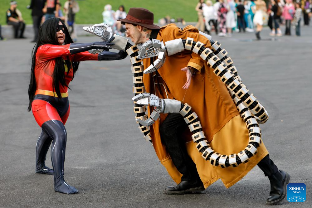 A costumed enthusiast poses for photos during the East European Comic Con festival in Bucharest, Romania, Sept. 12, 2025. The three-day East European Comic Con festival celebrating pop culture brings together thousands of fans who love comic books, movies, TV series and gaming. (Photo by Cristian Cristel/Xinhua)