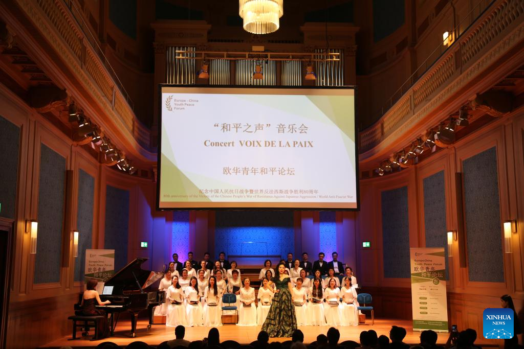 The Concert "Voice of Peace" is held during the first Europe-China Youth Peace Forum in Geneva, Switzerland, Sept. 15, 2025. The first Europe-China Youth Peace Forum gathered about 120 participants in Geneva on Monday, marking the 80th anniversary of the Victory of the Chinese People's War of Resistance Against Japanese Aggression and the World Anti-Fascist War. (Xinhua/Wang Yanan)