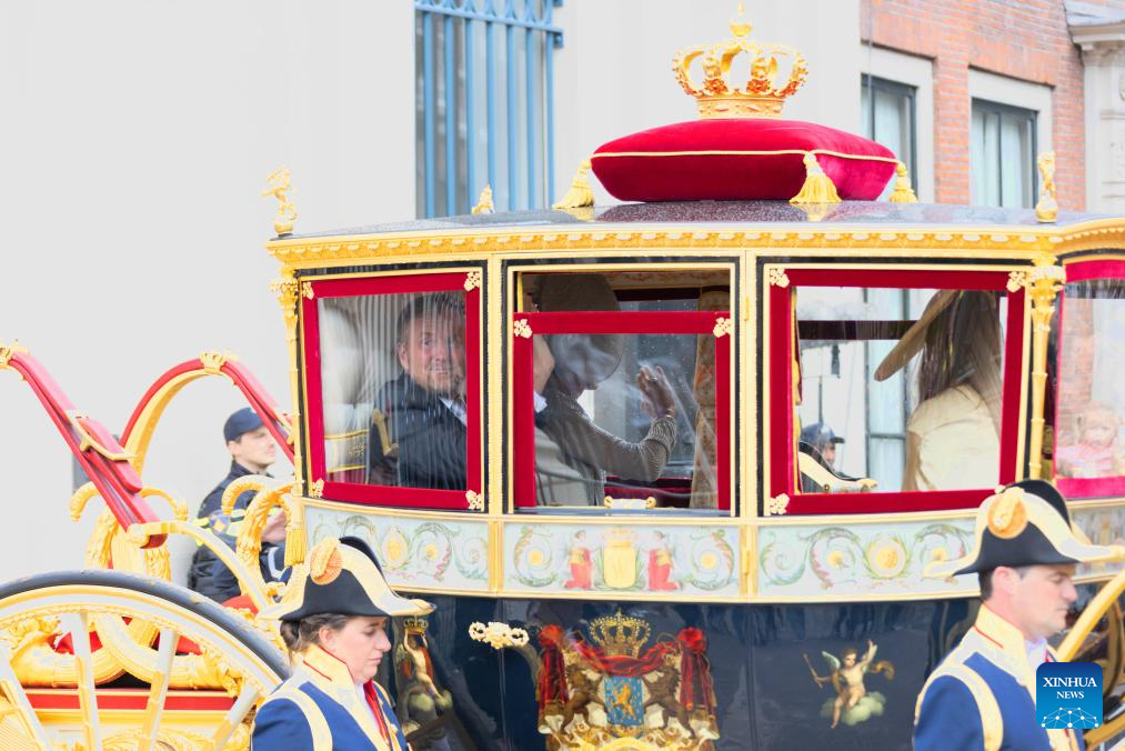 Dutch King Willem-Alexander waves to people in the Glass Coach on Prinsjesdag, or Prince's Day, in The Hague, the Netherlands, Sept. 16, 2025. The third Tuesday of September is the Prince's Day in the Netherlands, which marks the opening of the Dutch parliamentary season, and on this day the reigning monarch outlines the government's plans for the year ahead. (Photo by Sylvia Lederer/Xinhua)