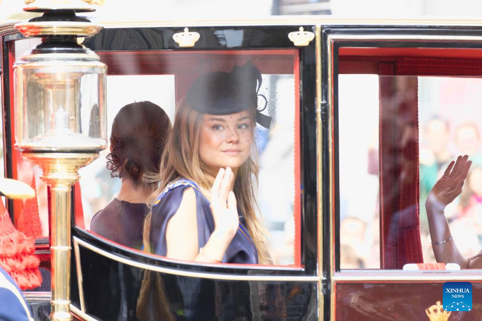 Dutch Princess Ariane waves to people in the Glass Coach on Prinsjesdag, or Prince's Day, in The Hague, the Netherlands, Sept. 16, 2025. The third Tuesday of September is the Prince's Day in the Netherlands, which marks the opening of the Dutch parliamentary season, and on this day the reigning monarch outlines the government's plans for the year ahead. (Photo by Sylvia Lederer/Xinhua)