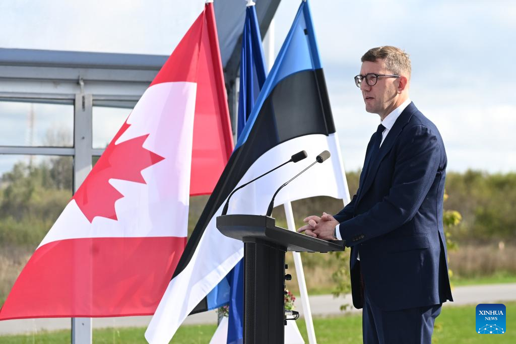 Estonian Prime Minister Kristen Michal addresses the opening ceremony of NEO magnetic plant in Narva, a city in northeastern Estonia, Sept. 19, 2025. A plant producing rare-earth magnets for Europe's electric vehicle and wind-energy sectors opened Friday in Narva, Estonia. (Photo by Sergei Stepanov/Xinhua)