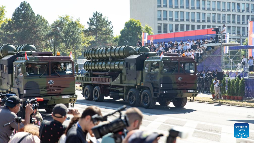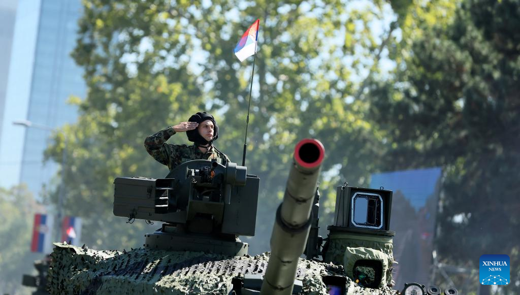 A military parade marking the Day of Serbian Unity, Freedom and the National Flag is held in Belgrade, Serbia, Sept. 20, 2025. Serbia showcased its military strength on Saturday with the "Power of Unity" parade held in front of the Palace of Serbia, marking the Day of Serbian Unity, Freedom and the National Flag.