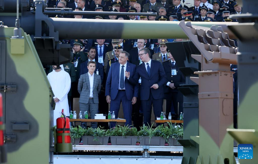 Serbian President Aleksandar Vucic attends a military parade marking the Day of Serbian Unity, Freedom and the National Flag in Belgrade, Serbia, Sept. 20, 2025. Serbia showcased its military strength on Saturday with the "Power of Unity" parade held in front of the Palace of Serbia, marking the Day of Serbian Unity, Freedom and the National Flag.
