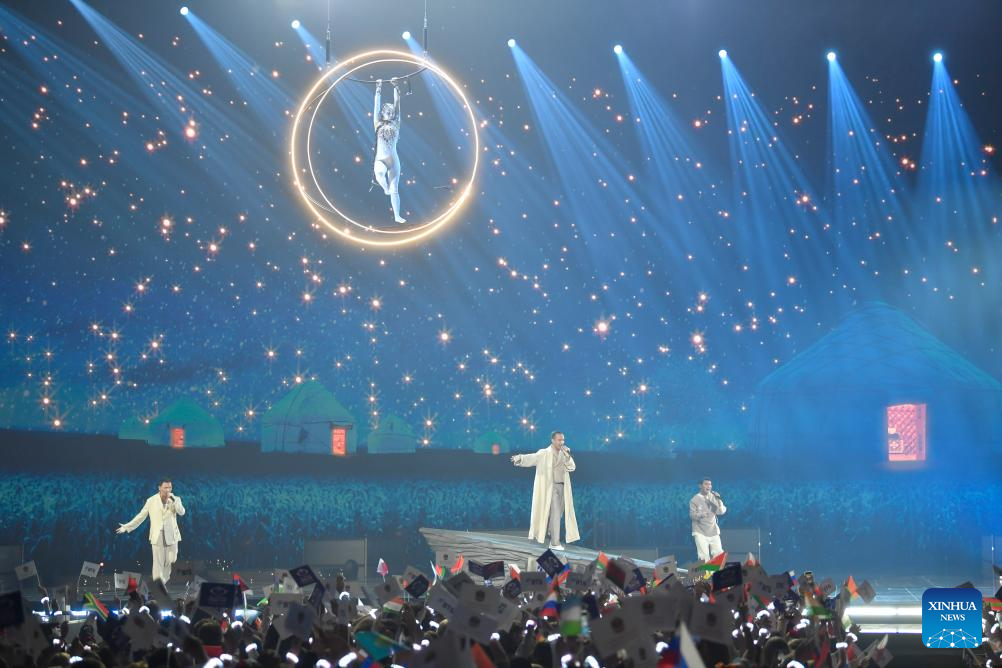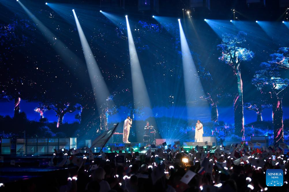 The song contest kicked off here Saturday, with the participation of artists from more than 20 countries. (Photo by Alexander Zemlianichenko Jr/Xinhua)