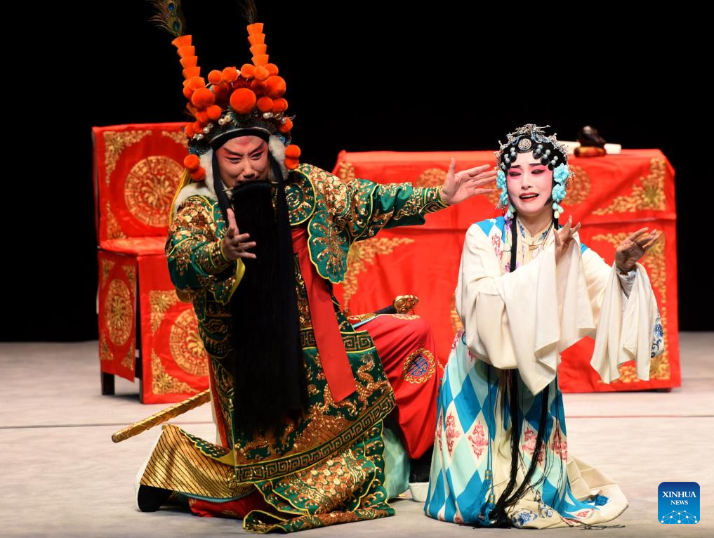 Artists perform Yangju opera in Vienna, Austria, Sept. 23, 2025. Yangju, a genre of traditional Chinese operas, was listed as a national-level intangible cultural heritage in 2006. (Xinhua/He Canling)
