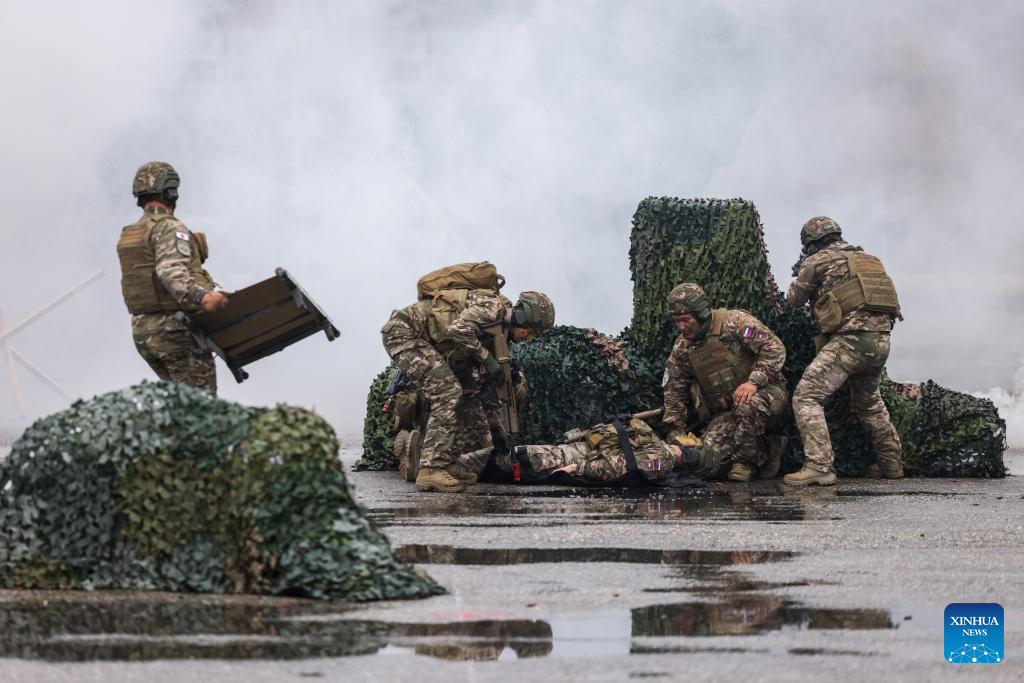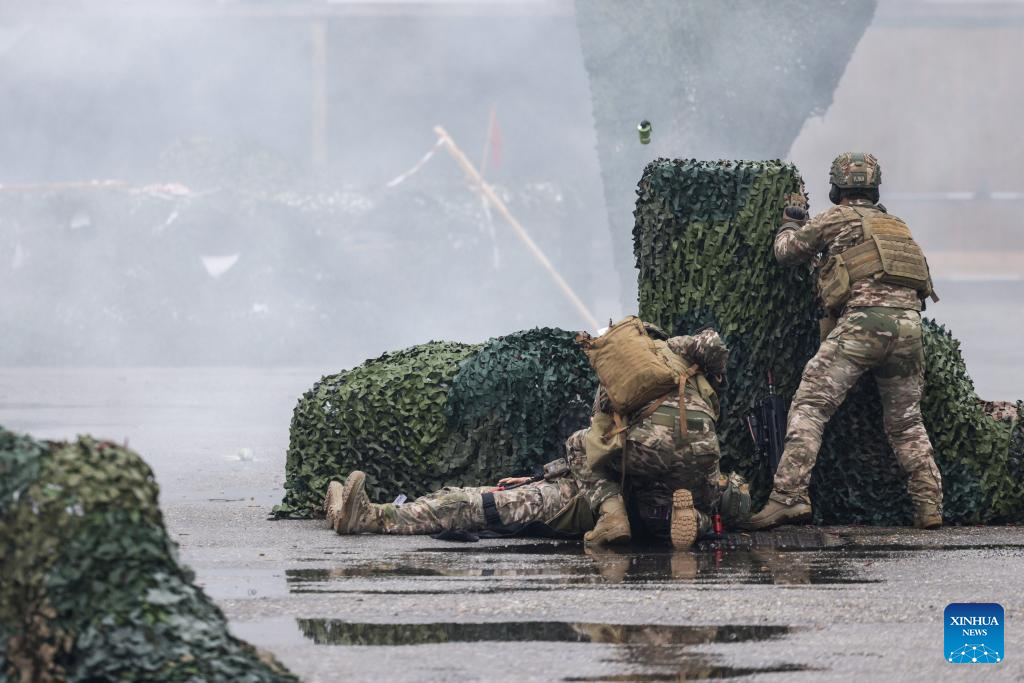 Soldiers demonstrate attacking a fortified position during the 10th International Fair of Defense, Security, Protection and Rescue in Gornja Radgona, Slovenia, Sept. 26, 2025. (Photo by Zeljko Stevanic/Xinhua)