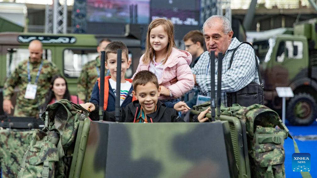 The fair, which is held every two years, showcased Serbian and international innovations in combat platforms, unmanned aerial vehicles (UAVs), communications, and logistics systems. (Photo by Wang Wei/Xinhua)