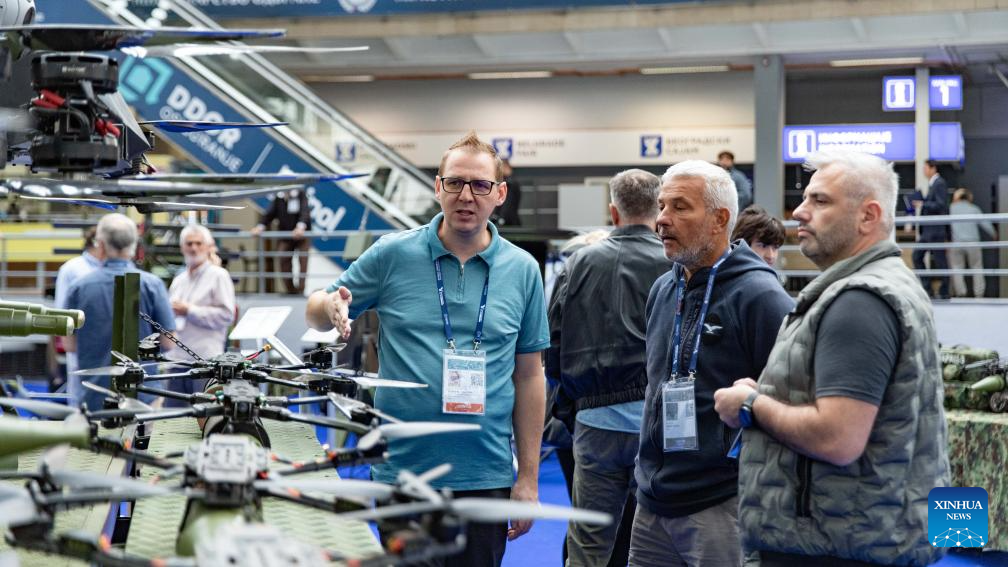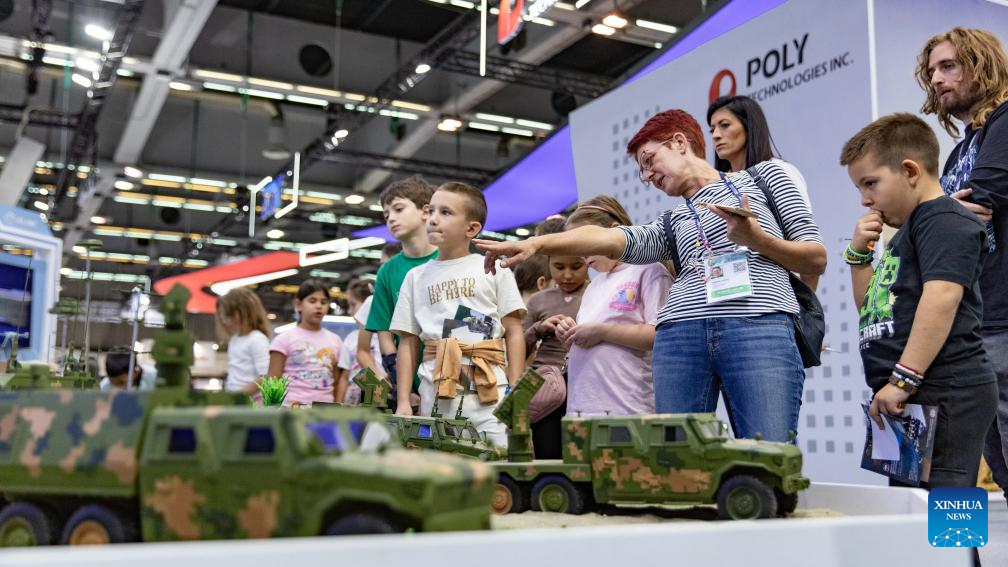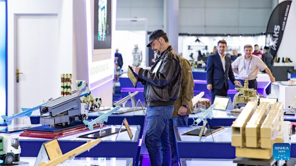 People visit the 12th International Arms and Defense Equipment Fair "Partner 2025" in Belgrade, Serbia, Sept. 26, 2025. The 12th International Arms and Defense Equipment Fair "Partner 2025" was held from Sept. 23 to 26 in Belgrade this year, attracting a record 200 exhibitors from more than 30 countries and regions, including leading European and global defense companies, according to the Ministry of Defense.
