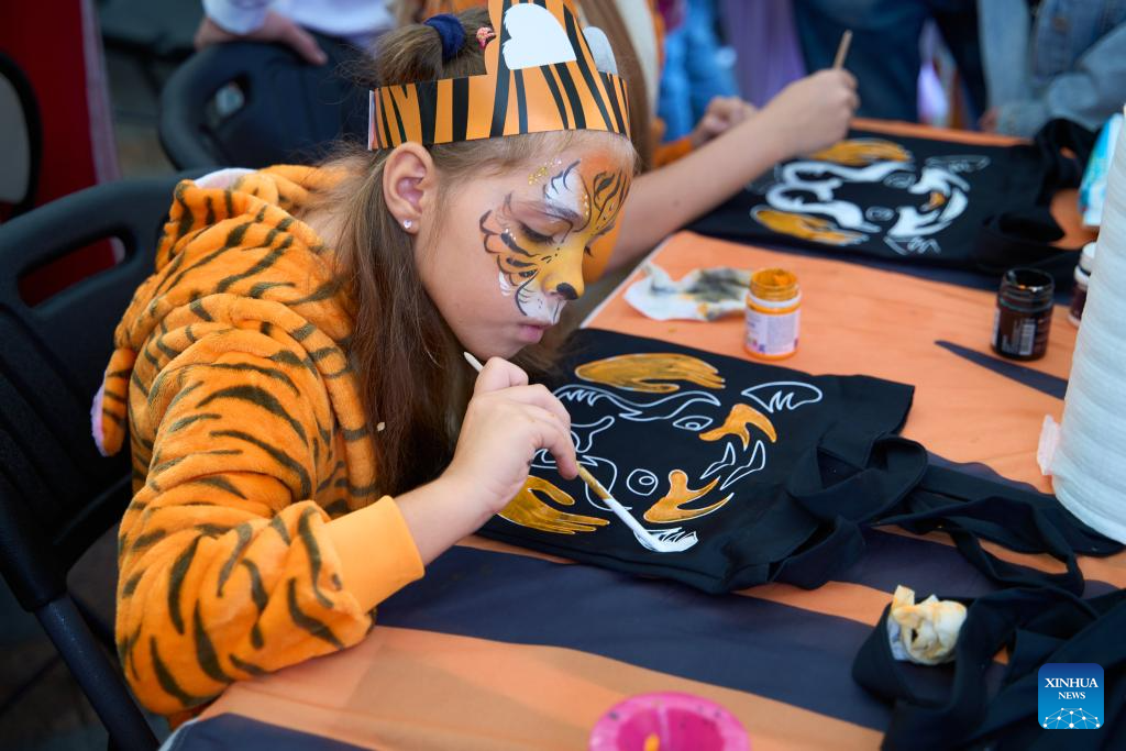 A girl draws a tiger during the Tiger Day event in Vladivostok, Russia, Sept. 28, 2025. Since 2000, Vladivostok has celebrated Tiger Day in the last weekend of September each year to raise public awareness about tiger conservation. (Photo by Guo Feizhou/Xinhua)