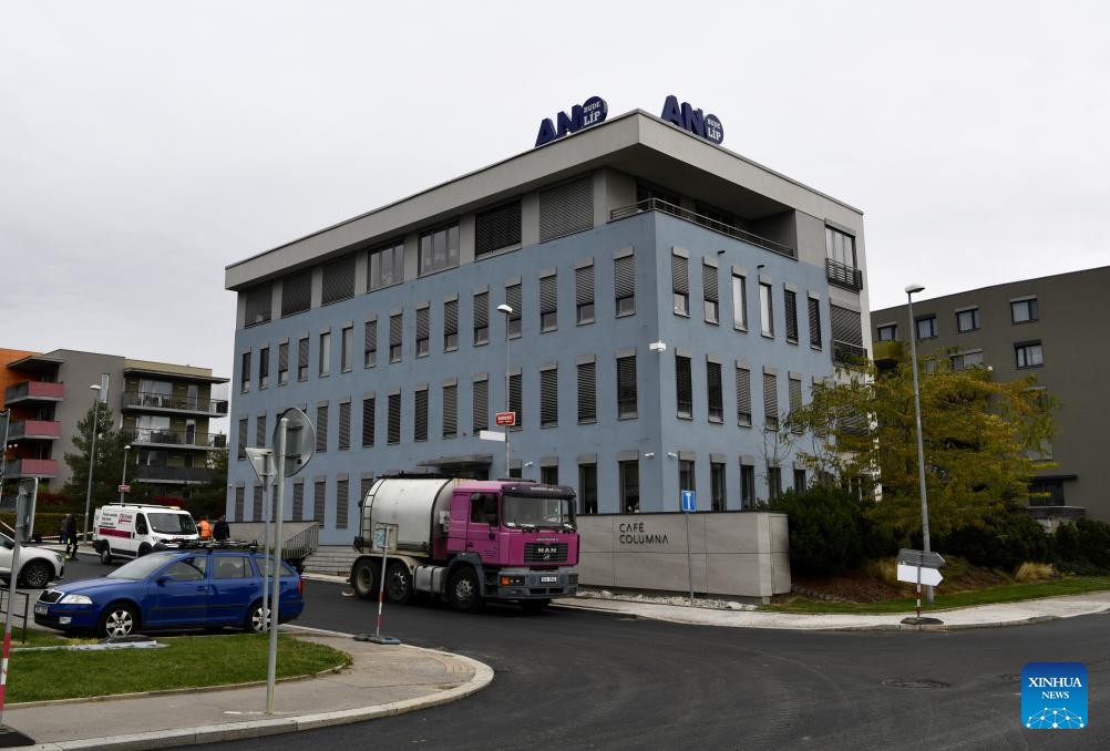 This photo taken on Oct. 4, 2025 shows the headquarters of the ANO party in Prague, capital of the Czech Republic.