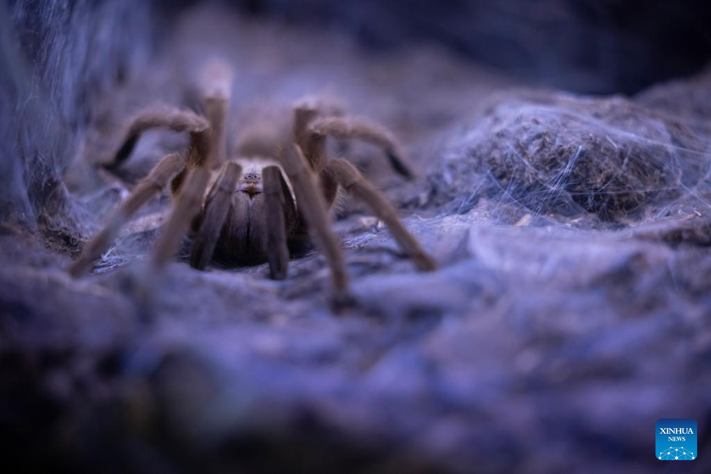 A bird spider rests in the nest during the 31st Bioexo Exotic Animals Exhibition in Ljubljana, Slovenia, Oct. 3, 2025. (Photo by Zeljko Stevanic/Xinhua)