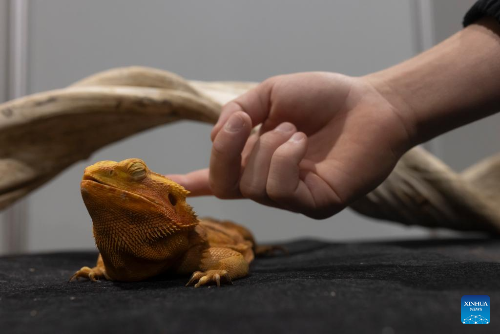 A bearded dragon is pictured during the 31st Bioexo Exotic Animals Exhibition in Ljubljana, Slovenia, Oct. 3, 2025. (Photo by Zeljko Stevanic/Xinhua)