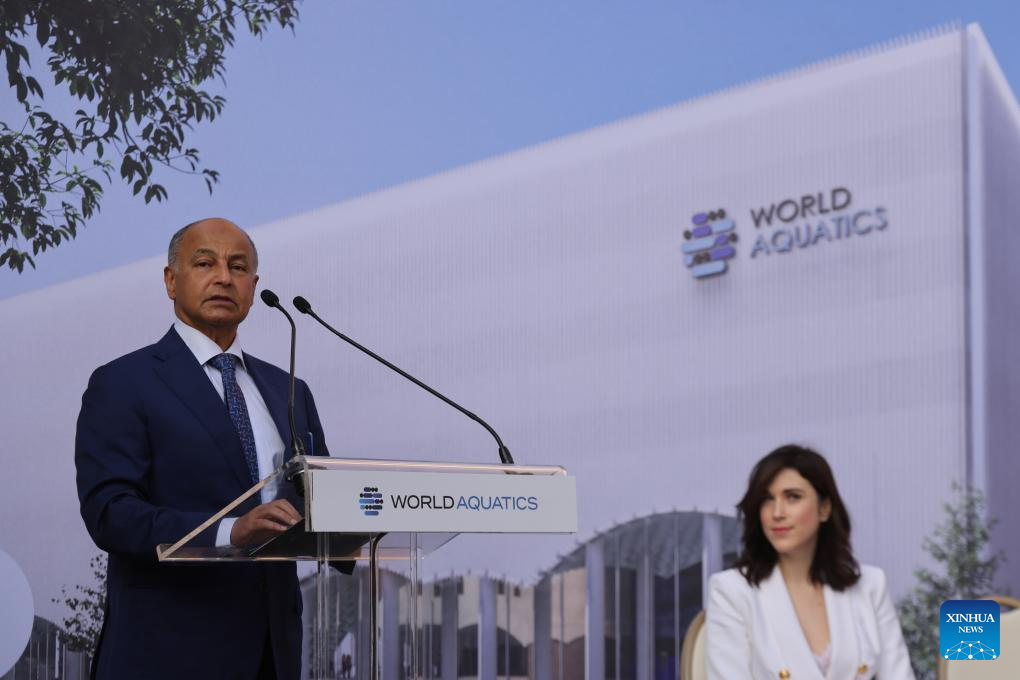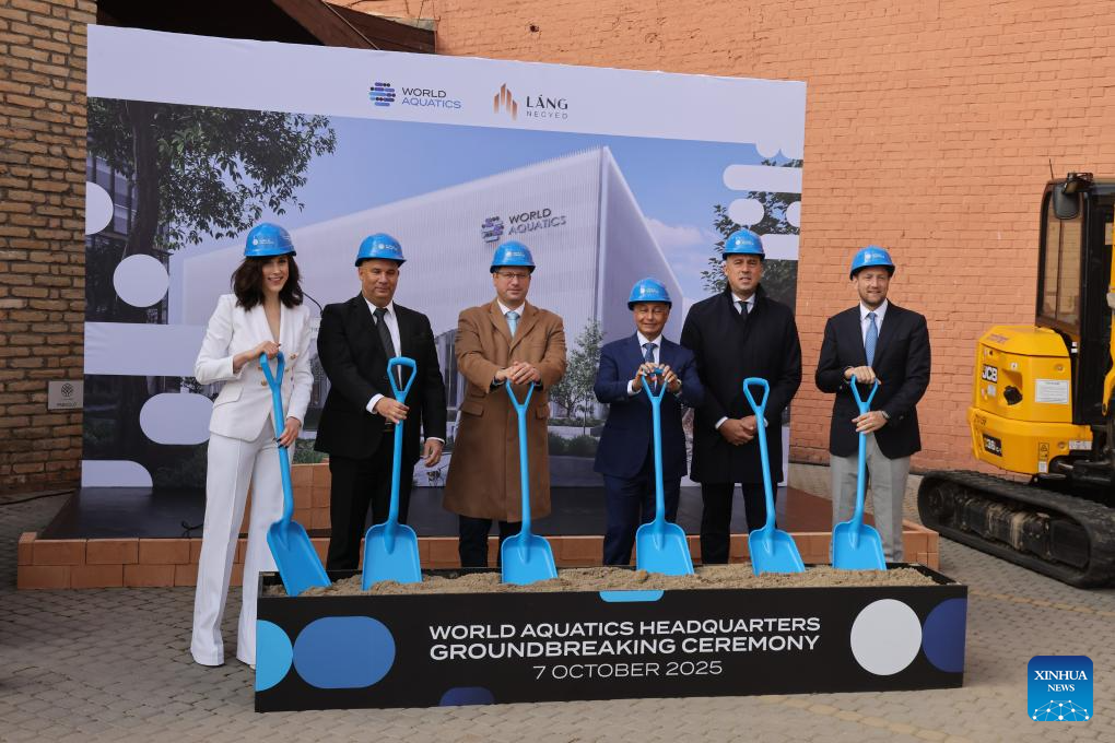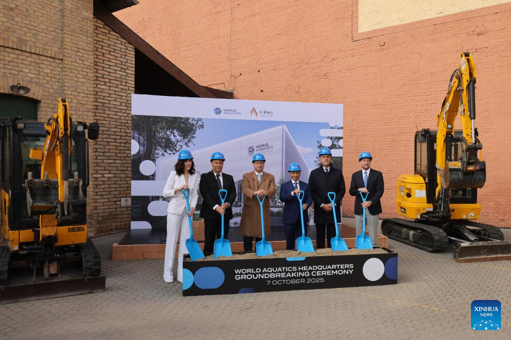 BUDAPEST, Oct. 7 (Xinhua) -- A landmark development is starting in Budapest's 13th District on Tuesday, as the foundation stone was laid for the new global headquarters of World Aquatics (formerly FINA). The world's third-largest sports federation is relocating to Budapest when its new home will feature not only its main office but a state-of-the-art global aquatics training center.
