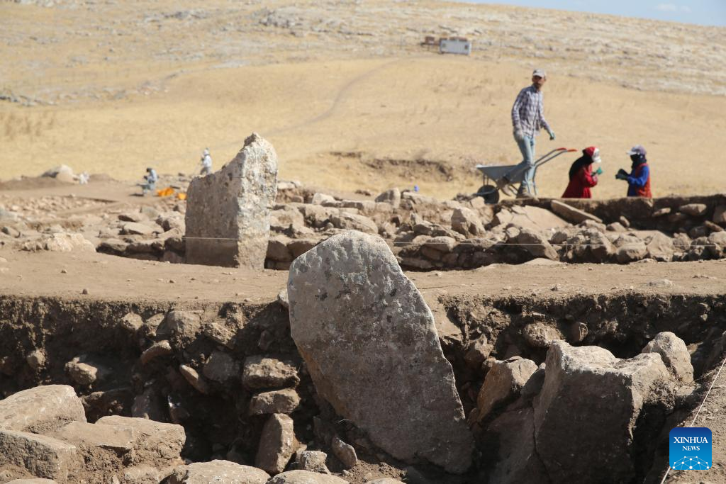 ANKARA, Oct. 6 (Xinhua) -- A T-shaped pillar carved with a human face has been unearthed for the first time during recent excavations at the Karahantepe archaeological site in southeastern Türkiye, a cabinet minister announced on Monday.