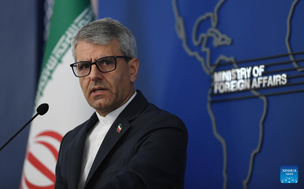 Iranian Foreign Ministry spokesman Esmaeil Baghaei attends a weekly press conference in Tehran, Iran, on Oct. 6, 2025. Iran has no plans to hold talks with France, Britain and Germany following their move to trigger the "snapback" mechanism to reimpose UN sanctions, Baghaei said on Monday. (Xinhua/Sha Dati)