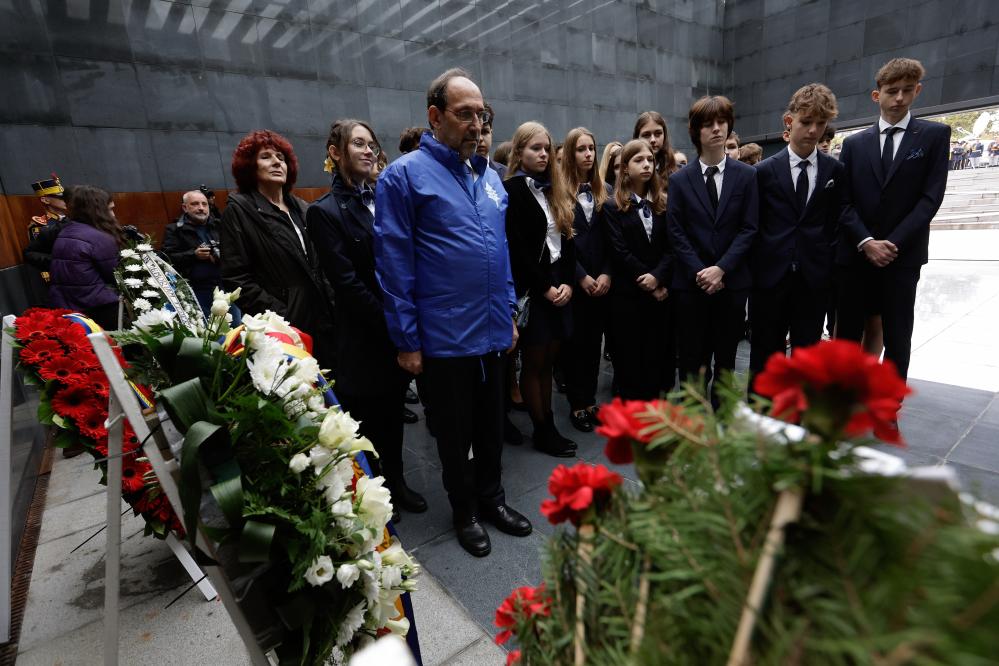 Members of the Romanian Jewish community attend a wreath laying ceremony to mark the Romanian national Holocaust remembrance day in Bucharest, Romania, Oct. 9, 2025. (Photo by Cristian Cristel/Xinhua)