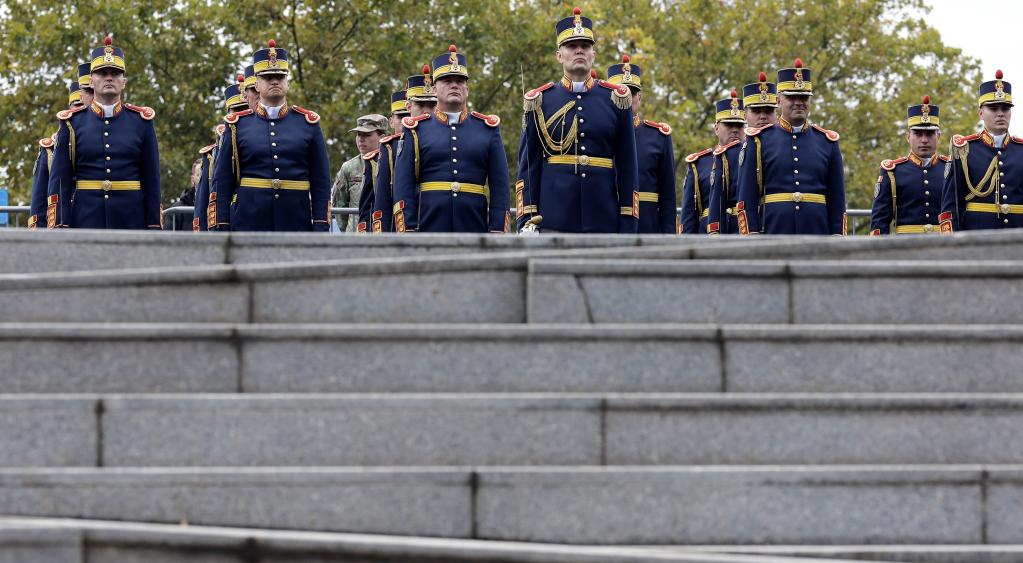 Soldiers attend a ceremony to mark the Romanian national Holocaust remembrance day in Bucharest, Romania, Oct. 9, 2025. (Photo by Cristian Cristel/Xinhua)