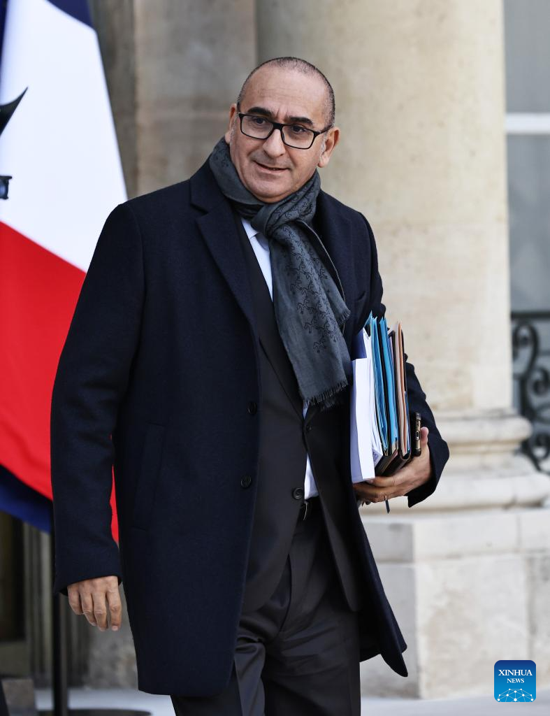 French Interior Minister Laurent Nunez leaves after the first weekly cabinet meeting of the new government at the Elysee Palace in Paris, France, Oct. 14, 2025. French Prime Minister Sebastien Lecornu on Sunday evening unveiled the lineup of his new government, comprising a total of 34 ministers, according to the Presidency. (Xinhua/Gao Jing)