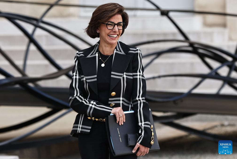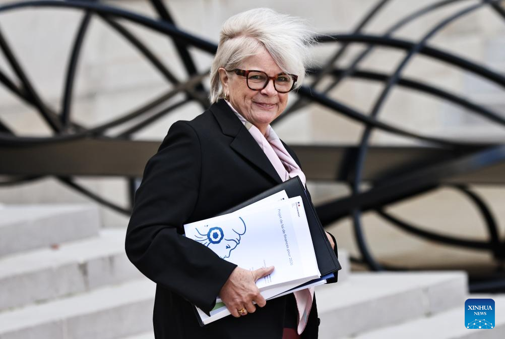 French Defense Minister Catherine Vautrin leaves after the first weekly cabinet meeting of the new government at the Elysee Palace in Paris, France, Oct. 14, 2025. French Prime Minister Sebastien Lecornu on Sunday evening unveiled the lineup of his new government, comprising a total of 34 ministers, according to the Presidency. (Xinhua/Gao Jing)