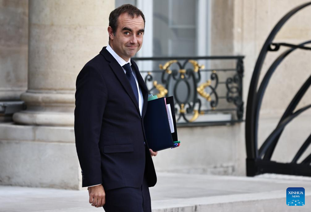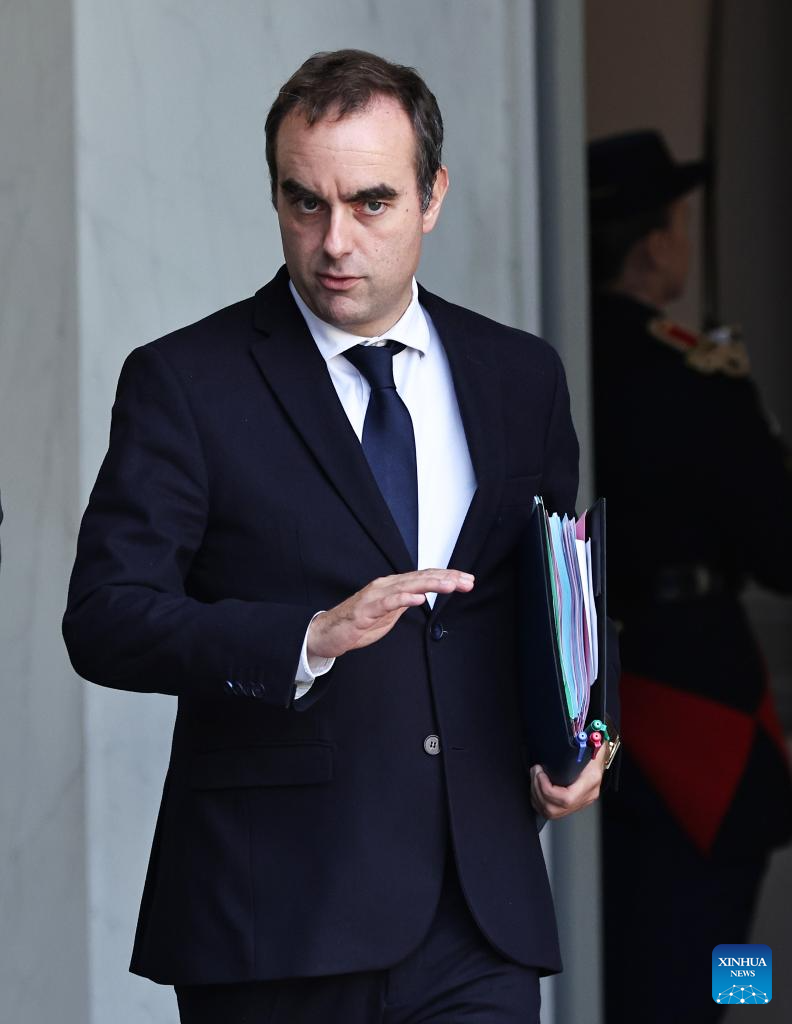 French Prime Minister Sebastien Lecornu leaves after the first weekly cabinet meeting of the new government at the Elysee Palace in Paris, France, Oct. 14, 2025. French Prime Minister Sebastien Lecornu on Sunday evening unveiled the lineup of his new government, comprising a total of 34 ministers, according to the Presidency. (Xinhua/Gao Jing)