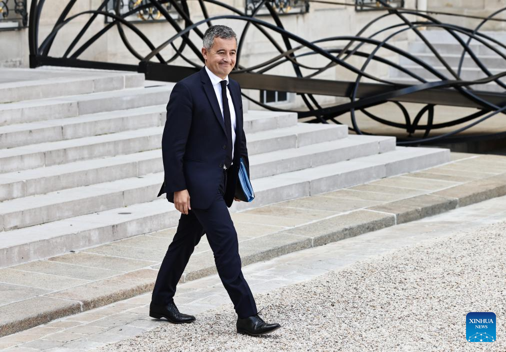 French Justice Minister Gerald Darmanin leaves after the first weekly cabinet meeting of the new government at the Elysee Palace in Paris, France, Oct. 14, 2025. French Prime Minister Sebastien Lecornu on Sunday evening unveiled the lineup of his new government, comprising a total of 34 ministers, according to the Presidency. (Xinhua/Gao Jing)